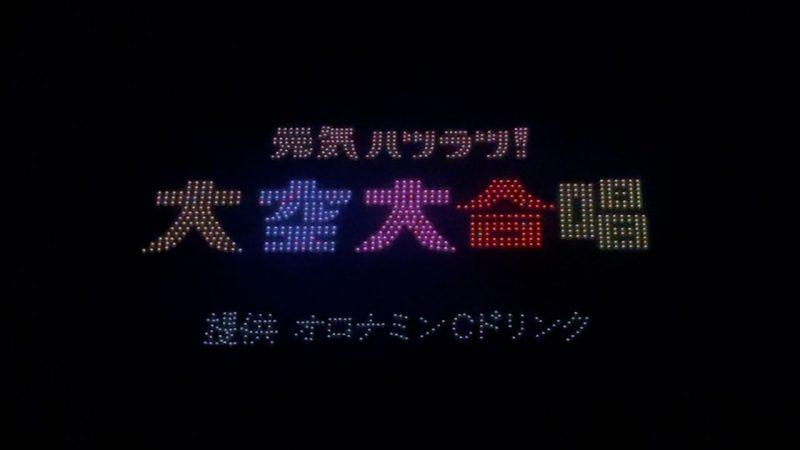 花火の前に開催された「オロナミンC 発売60周年記念!みんなで歌うドローンショー!元気ハツラツ!大空大合唱」夜空に浮かび上がった巨大なオロナミンCのボトル、そして音符や歌詞をドローンが正確に描き出す様子は圧巻の一言で、たまに色が変われていないドローンさえ可愛く思いました。