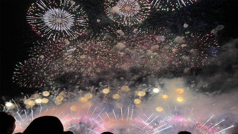 複雑なプログラミングによって制御されるドローンの動きとは対照的に、火薬の調合やタイミングといった職人技の結晶である花火の美しさには、また違った種類の感動を覚えました。