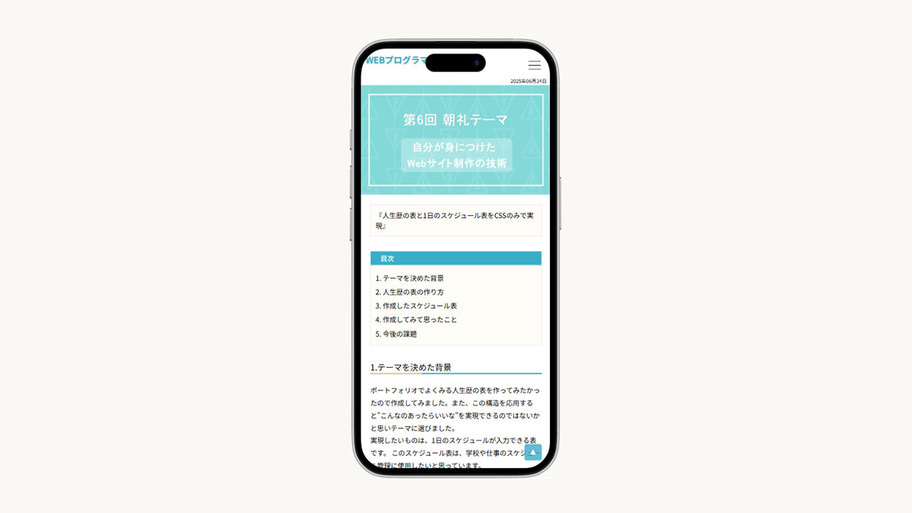 今後は、自分で動く仕組み(JavaScript)を作れるようになることです。そのために、プログラムの基本的な書き方をしっかりと学び、まずは他の人が書いたコードを正確に理解できるようにすることを目指します。