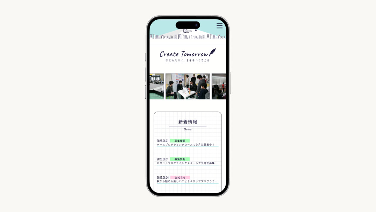 既存サイトの情報混在を解消するため、小中高校生向けに特化した専用Webサイトを構築。無料体験への参加を促し受講者増加に貢献すること、そしてWordPressによるCMS化で運営管理業務の効率化を図ること